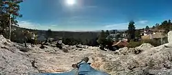 Indian Rock Park is a 1.18-acre (4,800 m2) public park at 950 Indian Rock Avenue in the city of Berkeley, California, on the slope of the Berkeley Hills. It is located in the northeast part of the city, about two blocks north of the Arlington/Marin Circle, and straddles Indian Rock Avenue. The central feature of the park is a large rock outcropping on the west side of Indian Rock Ave. The larger portion of the park, on the opposite side of the street, has several much smaller rock outcroppings, grass fields, and a small barbecue and picnic area. The rock is composed of Northbrae rhyolite.[1]