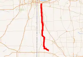 SR 55 southern terminus is at an intersection with State Road 25 (SR 25). SR 55 heads northwest towards Newtown where SR 55 has an intersection with State Road 341. SR 55 heads northwest out of Newtown towards U.S. Route 41 (US 41). SR 55 and US 41 are concurrent for 5.19 miles (8.35 km) through Attica. Northwest of Attica SR 55 leaves US 41 and heads north Oxford. North of Oxford, SR 55 has an intersection with U.S. Route 52 (US 52). US 52 and SR 55 are concurrent for 5.58 miles (8.98 km) until Fowler. In Fowler SR 55 leaves US 52 heading north towards Goodland. In Goodland SR 55 is concurrent with U.S. Route 24 (US 24). SR 55 heads north towards Crown Point passing through intersection with State Road 16, State Road 114, State Road 14, State Road 10, and State Road 2. In Crown Point SR 55 has an intersection with U.S. Route 231. SR 55 heads north after US 231 towards an intersection with Business US 6, the northern terminus of SR 55 is at this point.[3] Lake County has other names for Indiana 55. In Gary, it is called Cleveland Street. In Merrillville, it is Taft Street. In Crown Point, it is Main Street.