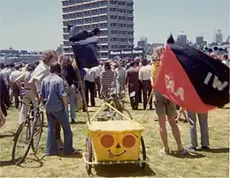 The first signs of new life for the IWW in the 1960s would be organizing efforts among students in San Francisco and Berkeley, which were hotbeds of student radicalism at the time. This targeting of students would result in a Bay Area branch of the union with over a hundred members in 1964, almost as many as the union's total membership in 1961. Wobblies old and new would unite for one more "free speech fight": Berkeley's Free Speech Movement. Riding on this high, the decision in 1967 to allow college and university students to join the Education Workers Industrial Union (IU 620) as full members spurred campaigns in 1968 at the University of Waterloo in Ontario, the University of Wisconsin–Milwaukee, and the University of Michigan in Ann Arbor.[62]:13 The IWW would send representatives to Students for a Democratic Society conventions in 1967, 1968, and 1969, and as the SDS collapsed into infighting, the IWW would gain members who were fleeing this discord. These changes would have a profound effect on the union, which by 1972 would have sixty-seven percent of members under the age of thirty, with a total of nearly five hundred members.[62]:14