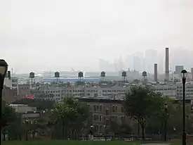Industry City (also Bush Terminal)[lower-alpha 1] is a historic intermodal shipping, warehousing, and manufacturing complex on the Upper New York Bay waterfront in the Sunset Park neighborhood of Brooklyn, New York City. The northern portion, commonly called "Industry City" on its own, hosts commercial light manufacturing tenants across 6,000,000 square feet (560,000 m2) of space between 32nd and 41st Streets, and is operated by a private consortium. The southern portion, known as "Bush Terminal", is located between 40th and 51st Streets and is operated by the New York City Economic Development Corporation (NYCEDC) as a garment manufacturing complex.