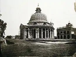 The construction of the monumental temple was entrusted to engineer Nicolas Canale. After his passing in 1876, the work was continued by his son Joseph, with architect Juan Antonio Buschiazzo also contributing to the later stages of the project. For lack of money, the building process was slow. To get more funds, he had to auction off the grounds containing the old chapel and the new construction. A text of the time stated "Today, the interesting ball past the Paseo de la Barranca building and land belonging to the old church takes place. Would recommend this field to rich capitalists who love the good and progress, much remains its product intended for the continuation of our colossal monument, the new church. "