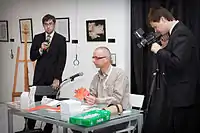 Calligrapher Petr Chobitko at the opening ceremony of the I International exhibition of calligraphy