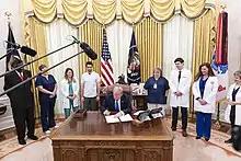 At 2017 International Nurses Day celebration, the first female President Tsai Ing-wen conducted a "passing of the torch" ceremony with leaders of the Taiwan Union of Nurses Association and the Taiwan Nurses Association. She honored nurses recognized for outstanding professionalism and service as well as over 2,200 nurses at the event who have been working for over 25 years. President Tsai expressed deepest respect and gratitude for their contributions to the health of people in Taiwan, and stressed the government has responsibility to increase benefits available to nurses and achieve more reasonable nurse-to-patient ratios and ensure friendlier workplaces. She also praised Taiwan's long tradition of providing international medical aid with the participation of nurses and emphasized the need to interact with other countries to share experience in nursing care. She emphasized the nursing profession's concern for global health is a shared value for all nations.[15][16][17][18]