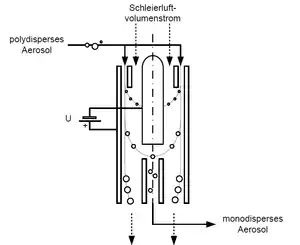 A DMA can separate charged aerosol particles or ions according to their mobility in an electric field prior to their detection, which can be done with several means, including electrometers or the more sophisticated mass spectrometers.[25][26][27]