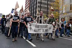Iraq Veterans Against the War (IVAW) is an advocacy group of formerly active-duty United States military personnel, Iraq War veterans, Afghanistan War veterans, and other veterans who have served since the September 11, 2001 attacks who were opposed to the U.S. military invasion and occupation in Iraq from 2003–2011. The organization advocated immediate withdrawal of all Coalition forces in Iraq, and reparations paid to the Iraqi people. It also provides support services for returning veterans to include health care and mental health.[1][2]
