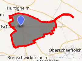 Adjacent communes are Hurtigheim to the north and Handschuheim to the west.