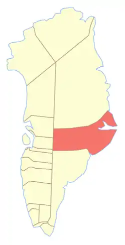 Ittoqqortoormiit Municipality (Greenlandic pronunciation: [itːoqːoʁtoːʁmiːt]) was one of the two municipalities of East Greenland. Since 1 January 2009 it has been incorporated into the Sermersooq municipality. It encompassed an area of 235,000 km² (91,000 sq mi) along the Denmark Strait and the Greenland Sea. Before the creation of the Northeast Greenland National Park in 1974, the former municipality had been much bigger (935,000 km²), formally encompassing the largely uninhabited area to the north up to the border with Avannaa (North Greenland).