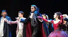 In early 2013 Ivan Ozhogin cast for the role of Count von Krolock in the Berlin production of Dance of the Vampires and subsequently replaced Thomas Borchert. On February 8, 2013 Ivan performed for the first time in the German-speaking version of the musical on stage of the Theatre of the West in Berlin and became the first Russian actor to get cast in the original German production.[7][8][9] He stated in an interview that he is not aware of any other musical actors that would perform the same role in two different languages and in two different countries at the same time.[10]