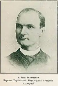 Before his arrival, the Ukrainian Greek Catholic immigrants attended the local Latin Rite Roman Catholic churches. He arrived in Shenandoah, Pennsylvania in 1884 after Ukrainian immigrants petitioned the Metropolitan of Lviv for their own priest.[1] Volansky encountered difficulty being recognized by the local Roman Catholics since he was married.[2]