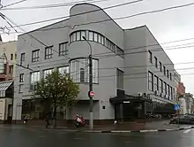 There are several objects of cultural heritage in Ivanovo. The period from 1914 to 1934 became the “golden age” of architecture in Ivanovo.[17] The center of the city boasts buildings of the period of constructionism built there in the 1920s – early 1930s. For historical reasons, Ivanovo-Voznesensk became the site of unique construction experiments carried out by both architects from Moscow and St. Petersburg, and local architects.[18] Among them are the buildings, like the Ship-building (1930), architect D. F. Friedman; the Horseshoe-building (1934), architect A. I. Panov; the Regional Bank building (1927), architect V. A. Vesnin; the Palace of Arts (1939), architect A. V. Vlasov; House of the Collective (1931), architect I. A. Golosov; the Ivanovo railway station (1934); Oblsovnarhoz-houses (1935), N. I. Kadnikov; and others.[19] First Workers' Settlement is rare landmark of the art of city planning from the 20s is of exceptional interest as one of earliest examples of mass, low rise standardized construction that reflects ideas of the city-garden.[17]