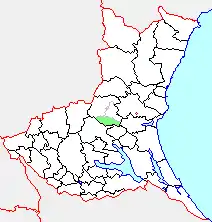 Iwama (岩間町, Iwama-machi) was a small town located in Nishiibaraki District, Ibaraki Prefecture, Japan.