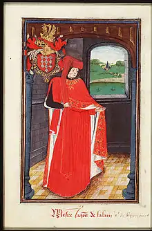 As a child, Jacques was well-educated since literature was cultivated in Burgundy at the time of his youth. Therefore, he was learned in both Latin and French, and accomplished in literary work. But it was in warlike sports that he excelled the most. At a young age he went to the court of Philip the Good to serve and eventually become a knight.[2] In 1436, he was sent by the Duke of Burgundy with 600 fighters to serve the King of France under the command of Marshal Jean de Villiers de L'Isle-Adam.