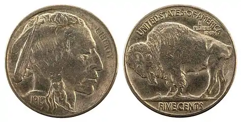 Fraser's work in Washington includes The Authority of Law and The Contemplation of Justice at the U.S. Supreme Court; the south pediment and statues at the National Archives; Alexander Hamilton and Albert Gallatin at the U.S. Treasury; and the Second Division Monument, completed with the firm of architect John Russell Pope. His commissions also include coins and medals, such as the World War I Victory Medal, the Navy Cross, and the Indian Head (Buffalo) nickel. This coin was discontinued after 1938, but has since been reprised in 2001 on a US commemorative coin, and more recently on a gold buffalo one ounce gold bullion coin.