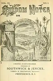 In 1894 the firm was sold off to Walter A. Angell and Harry A. Cash who renamed the store to Angell & Cash. Southwick then became a curator at the Roger Williams Park Museum in Providence in 1896. Here he set up a collection of the birds of the region which he called the "Rhode Island Room" and also took a special interest in applied entomology. As State Entomologist and member of the Tree Protection Society he took a special interest in gypsy moths, elm leaf beetles and the San Jose scale which were threats to the local trees and crops. He was also a member of other groups including the Audubon Society, the Tree-Protection Society, the Rhode Island Horticultural Society and St. John's AF & AM Lodge. Suffering from poor health he went to Rhode Island Hospital on May 26, 1904 and died of heart failure on June 3rd.[1][2][3]