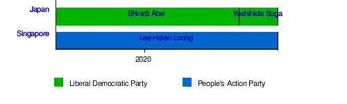 Japan–Singapore relations or Singapore–Japan relations (Japanese: 日本とシンガポールの関係 Nihon to Shingapōru no kankei) refer to the bilateral relations between Japan and Singapore, two highly developed Asian countries which share historical, economic, and political ties. While the two countries first established bilateral relations in 1966, some of the earliest relations date back from before the 15th century during the Muromachi period as well as the Ryukyu Kingdom.[1] This continued for centuries until the most notable interaction with Japan's invasion of Singapore during World War II. The invasion led to a takeover of the country, after which Japan occupied Singapore for approximately four years before withdrawing following their loss in the war.