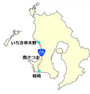 National Route 270 is a national highway of Japan connecting Makurazaki, Kagoshima and Ichikikushikino, Kagoshima in Japan, with a total length of 52.4 km (32.56 mi).