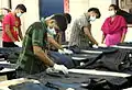 P P Spray and P P Sponging being applied to jeans to give them a new look.