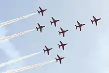 Regular performers include the Red Arrows, RAF Falcons parachute display team, and the Battle of Britain Memorial Flight.[4]