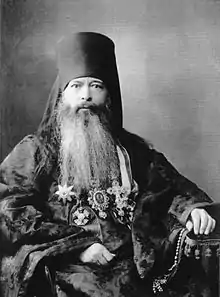 Archbishop Joachim of Nizhny Novgorod (born Ivan Ioakimovich Levitsky (Russian: Иван Акимович Леви́цкий, (30 March 1853 - c. 1921), was a Russian Orthodox bishop and religious writer allegedly martyred by local Bolsheviks by being crucified upside down on the royal doors of the iconostasis in St. Vladimir's Cathedral in Sevastopol.[1] The exact date of his death is unclear, with dates ranging from 1918 to 1920 or even to "not later than April 1921" in various sources, and he is sometimes said merely to have "died at the hands of unknown bandits".[2]