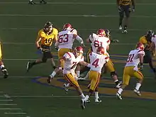 Because of his talent and versatility, the media and opposing coaches called McKnight the "next Reggie Bush".[2] McKnight began college at the University of Southern California in June 2007.[2] He was awarded with the inaugural Frank Gifford Endowed Football Scholarship, which is given out annually by the USC athletic department to an incoming freshman running back, quarterback or wide receiver who best emulates Gifford's life, success and spirit.[9] By the pre-season practice before his freshman season at USC, McKnight had already demonstrated some of the speed and moves that made him an impact player in high school.[10][11]