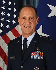 He is a graduate of the Air Command and Staff College and Air War College; holds a master's degree in Business Management from Webster University and completed Senior Management courses at The University of Virginia, Harvard University and the University of North Carolina at Chapel Hill. His military awards include the Distinguished Service Medal with Oak Leaf Cluster, Legion of Merit with Oak Leaf Cluster and Meritorious Service Medal with 4 Oak Leaf Clusters.[3][4][5]
