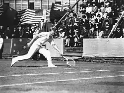 John Edward Bromwich (14 November 1918 – 21 October 1999)[3] was an Australian tennis player who, along with fellow countryman Vivian McGrath, was one of the first great players to use a two-handed backhand. He was a natural left-hander, though hit his serve with his right hand.[4] Bromwich twice won the Australian Championships singles title, in 1939 (over Adrian Quist in a straight sets final) and in 1946 (a thrilling 5-set final victory over Dinny Pails). He was ranked World No. 3 by A. Wallis Myers in 1938 and again by Harry Hopman in 1947.[2][5]