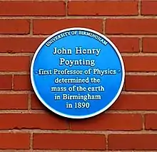 John Henry Poynting FRS[1] (9 September 1852 – 30 March 1914[2][3]) was an English physicist. He was the first professor of physics at Mason Science College from 1880 to 1900, and then the successor institution, the University of Birmingham until his death.[4]