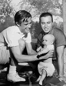 ![]() Lupton with daughter Rollin and 'Broken Arrow' co-star Michael Ansara, 1957. | |