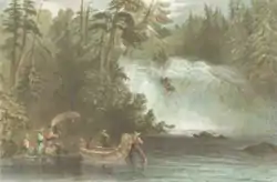 After the Koksoak cleared of ice on 25 June 1839,[38] McLean travelled up Ungava Bay to the George River, which they followed despite its low water[38] until its head of navigation. They then passed overland to where Erlandson had established Fort Nascopie[39] on Petitsikapau Lake.[1] Attempting to complete the route without Innu guides, they got lost[29] and reached the upper Churchill,[1] discovering the Grand Falls (now Churchill Falls).[40][3] McLean considered it "stupendous" and "one of the grandest spectacles in the world",[41] although a hydroelectric project subsequently almost eliminated its flow after 1970. Compelled to return, they reached Fort Chimo on September 20th.[1]