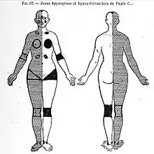 Around 1885 an associate of Charcot, Albert Pitres, another famous French neurologist at the Salpêtrière hospital, in a throwback to phreno-mesmerism, went even further, claiming that he had discovered zones hypnogènes, or "hypnogenetic zones" which, he said, when stimulated threw people into the hypnotic state, and zones hypnofrénatrices or "hypno-arresting zones", which, when stimulated, abruptly threw people out of that same hypnotic state (Pitres, 1891, passim).