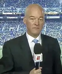 Jonathan Martin Champion (born 23 May 1965) is a British sports commentator currently working for ESPN. Champion is a well-established and experienced commentator who has also worked for the BBC and ITV over the last 20 years.[2] Champion currently covers international football and Major League Soccer for ESPN. His broadcast partner for international matches is Stewart Robson, while he works with Taylor Twellman for MLS. His late father David Champion was the deputy headmaster of the independent school Bootham School, York. Jon's commentaries can also be heard on the worldwide feed of many Premier League and League Cup matches worldwide.