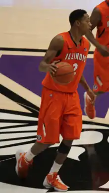 Entering the University of Illinois during the 2009–10 season, Bertrand suffered a tear in his right Lateral meniscus during individual, preseason workouts. The injury, which required surgery, forced Bertrand to take a Medical redshirt as a true freshman.[3][4] During his redshirt freshman season, Bertrand saw limited time off the bench as the 2010–11 Fighting Illini featured a starting line-up of four seniors and a regular rotation of a former Illinois Mr. Basketball winner and a former McDonald's All-American in Brandon Paul and Jereme Richmond, respectively. In total, Bertrand saw action in 15 games during the 2010–11 season.