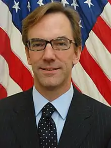 Joseph S. Pennington is an American diplomat who is a Career Member of the Senior Foreign Service with the rank of Minister-Counselor and is the Senior Advisor to the Ambassador on U.S. Assistance to Ukraine.[1] When Ambassador Marie Yovanovitch was recalled in the spring of 2019, and incoming Deputy Chief of Mission Kristina Kvien not to arrive in Kyiv on May 28, Pennington continued to serve as chargé d'affaires and acting deputy chief through the transition period.[2] It has been reported that Pennington was one of two Embassy officials who were briefed on a meeting in which Ukrainian President Volodymyr Zelenskiy said he felt pressure from the Trump Administration to investigate Hunter Biden.[3]
