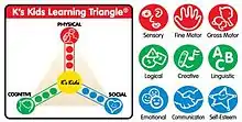 Every piece of K's Kids toy is designed for the healthy development of a child. To help parents understand the benefits of their toy to children, K's Kids have developed "Learning Triangle" which summarizes what a child needs in his PHYSICAL, COGNITIVE and SOCIAL developments.