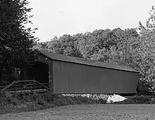 In 1858, General Albert Sydney Johnston, commander at Fort Leavenworth, had four covered bridges constructed across Stranger Creek. The bridges cost about $1500 each and were constructed at Easton, Farmington, Jarbalo and Springdale. The other three were removed in the 1930s. It was later abandoned for a few years before the State Highway Commission starting a restoration project in 1946, including a new roof and siding. Then on September 21, 1958, the bridge was struck by lightning and burned down.[3]