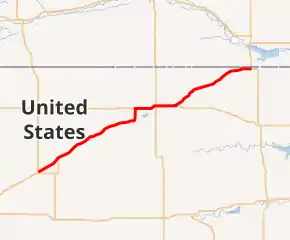 K-383 is a state highway in Kansas, United states. The highway runs 74.042 miles (119.159 km) from U.S. Route 83 (US-83) and K-23 near Selden north and east to US-183 near Woodruff, just south of the Nebraska state line. K-383 runs southwest–northeast and connects Norton with Colby to the southwest and Alma, Nebraska, to the northeast via the valley of Prairie Dog Creek, a tributary of the Republican River. The highway also serves the cities of Selden in northern Sheridan County; Dresden, Jennings, and Clayton in southeastern Decatur County; Almena in eastern Norton County; and Long Island in northern Phillips County. K-383 is a part of the National Highway System from its western terminus at US-83 to the eastern US-36 junction near Norton.[3]
