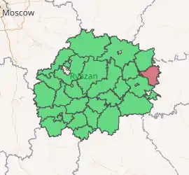 Kadomsky District (Russian: Ка́домский райо́н) is an administrative[1] and municipal[6] district (raion), one of the twenty-five in Ryazan Oblast, Russia. It is located in the east of the oblast. The area of the district is 986 square kilometers (381 sq mi). Its administrative center is the urban locality (a work settlement) of Kadom.[2] Population: 8,494 (2010 Census);[3] 10,708 (2002 Census);[8] 14,328 (1989 Census).[9] The population of Kadom accounts for 64.5% of the district's total population.[3]