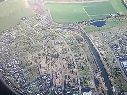 ![]() Kaiapoi River through Kaiapoi, with the Courtenay Stream on the top right | |