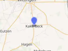 The village of Kakerbeck lies in the north German state of Lower Saxony in the district of Gifhorn. It is a village in the borough of Wittingen.
