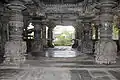 Ornate mantapa (hall) and lathe turned pillars with decorative base containing relief