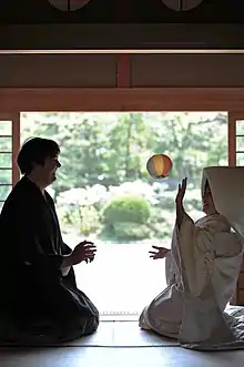 A kakufūsen (角風船) (kaku means "angled") is a paper balloon in the shape of a cube rather than a sphere, often used for commercial marketing purposes. Door-to-door salesmen called baiyaku-san (売薬さん) from the traditional medicine companies of Toyama used to give out kakūfūsen printed with drug company advertising.[1][3] Small chests filled with various medicines and bandages were left at no initial cost with customers, and the salesman would return from time to time, to restock the cabinet and collect payment. This system of "use first, pay later" marketing of medicines is called "okigusuri".[4]