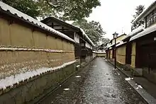 Kanazawa has a Humid subtropical climate (Köppen Cfa) characterized by hot, humid summers and cold winters with heavy snowfall.[3] Average temperatures are slightly cooler than those of Tokyo, with means approximately 4 °C (39 °F) in January, 12 °C (54 °F) in April, 27 °C (81 °F) in August, 17 °C (63 °F) in October, and 7 °C (45 °F) in December. The lowest temperature on record was −9.4 °C (15.1 °F) on January 27, 1904, with a maximum of 38.5 °C (101.3 °F) standing as a record since September 8, 1902.[4] The city is distinctly wet, with an average humidity of 73% and 193 rainy days in an average year. Precipitation is highest in the autumn and winter; it averages more than 250 millimetres (10 in)/ month November through January when the Aleutian Low is strongest, but it is above 125 millimetres (4.9 in) every month of the year.