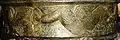 The edge of the lid is decorated by a frieze of flying geese, or hamsa, symbolizing the travel of departing souls and the removal from samsara. Some of the geese have a wreath of victory in their beak.