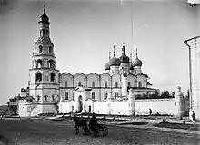 As a result of the Siege of Kazan in 1552, Tsar Ivan the Terrible conquered the city and massacred the majority of the population.[24] During the subsequent governorship of Alexander Gorbatyi-Shuisky, most of the Kazan's Tatar residents were forcibly Christianized or deported,[25] the Kerashen Tatars.[24] Mosques and palaces were ruined.[24] The surviving Tatar population was moved to a place 50 kilometers (31 mi) away from the city and this place was forcibly settled by Russian farmers and soldiers. Tatars in the Russian service were settled in the Tatar Bistäse settlement near the city's wall. Later Tatar merchants and handicraft masters also settled there. During this period, Kazan was largely destroyed as a result of several great fires. After one of them in 1579, the icon Our Lady of Kazan was discovered in the city.