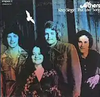 Keep Singin' That Love Song was The Archers first major label album. Impact Records re-released their independent recording, The Archers, a year earlier and sent master producer Bob MacKenzie to the West Coast for the new project. The album included the Number One hit, “Little Flowers”[1] and “Jesus, He Is The Son Of God”. Paul Revere and The Raiders’ arranger, Bobby Sisco[2] who would meet an untimely death during the recording of the group’s Things We Deeply Feel project one year later, arranged the album’s rhythm and orchestration.[3] Musicians included Derek and the Dominos’ drummer Jim Gordon and Steely Dan regular Ben Benay. The Archers moved on to Ralph Carmichael’s Light Records shortly after its release, where they would remain for most of the following decade.