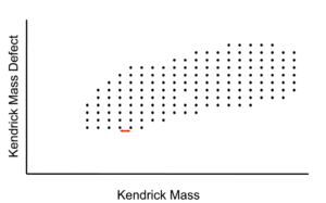 The Kendrick mass defect is defined as the exact Kendrick mass subtracted from the nominal (integer) Kendrick mass:[17][18]
