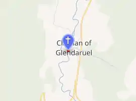 Built in 1783 Kilmodan Church (or Kilmodan Kirk), is in the Clachan of Glendaruel in the Kilmodan parish of the Cowal peninsula, Argyll and Bute, West of Scotland. It is constructed to a Georgian T-plan design and a category B listed building. The walls are inset with shields from the previous church on the site and one is inscribed and dated 'SDC/1610.' There is also a memorial to Rev John Maclaurin (Minister there from 1689-1699) and his notable sons (one of whom was Colin Maclaurin). It has a rendered front and both the ends and rear are harled.[1][2] The building underwent complete restoration in 1983.[3]