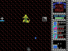 King's Knight is a vertically scrolling shooter, where the main objective is to dodge or destroy all onscreen enemies and obstacles. Various items, however, add depth to the game. As any character, the player can collect various power-ups to increase a character's level (maximum of twenty levels per character): as many as seven Jump Increases, seven Speed Increases, three Weapon Increases, and three Shield Increases. There are also Life Ups, which are collected to increase the character's life meter. There are also Life Downs which should be avoided. Other onscreen icons can affect the stage, such as hidden cave entrances/exits and a "secret revealer," which reveals hidden stones that block progress. Finally, there are four types of elements to be collected in each level, which are vital to the completion of the last stage. These elements are simply elements A, B, C, and D.