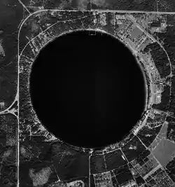 Kingsley Lake is an almost perfectly circular lake of about 2,000 acres (810 ha) in North Central Florida, about six miles (9.7 km) east of Starke, Florida. According to some sources, it is the oldest and highest lake in Florida,[3] located on the edge of the Trail Ridge formation. The lake is a very stable lake with a sandy bottom. Its deepest point is about 100 feet (30 m) inside of a steep sinkhole within the lake.[1] Kingsley lake is so nearly circular that pilots call it the Silver Dollar lake. There are around 180 docks around the lake, mostly around the western half of the lake encompassing the small community of the same name. Camp Blanding is on the eastern side of the lake as part of the Florida National Guard, as well as a small airstrip just to the southeast of the lake as part of Camp Blanding. The lake is about 30 miles northeast of Gainesville, 30 miles southwest of Jacksonville, and 30 miles northwest of Palatka.