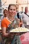 Paramahansa Yogananda, a Bengali saint was an early proponent of kirtan in the west, chanting Guru Nanak Dev's Hey Hari Sundara ("Oh God Beautiful") with 3,000 people at Carnegie Hall in 1923.[50] Kirtan became more common with the spread of Gaudiya Vaishnavism by the International Society for Krishna Consciousness's (ISKCON) founder A. C. Bhaktivedanta Swami Prabhupada in the 1960s.[51]